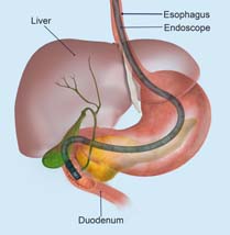 The endoscope is a long, thin, flexible tube with a tiny video camera and light on the end. By adjusting the various controls on the endoscope, the doctor can safely guide the instrument to carefully examine the inside lining of the upper digestive system.